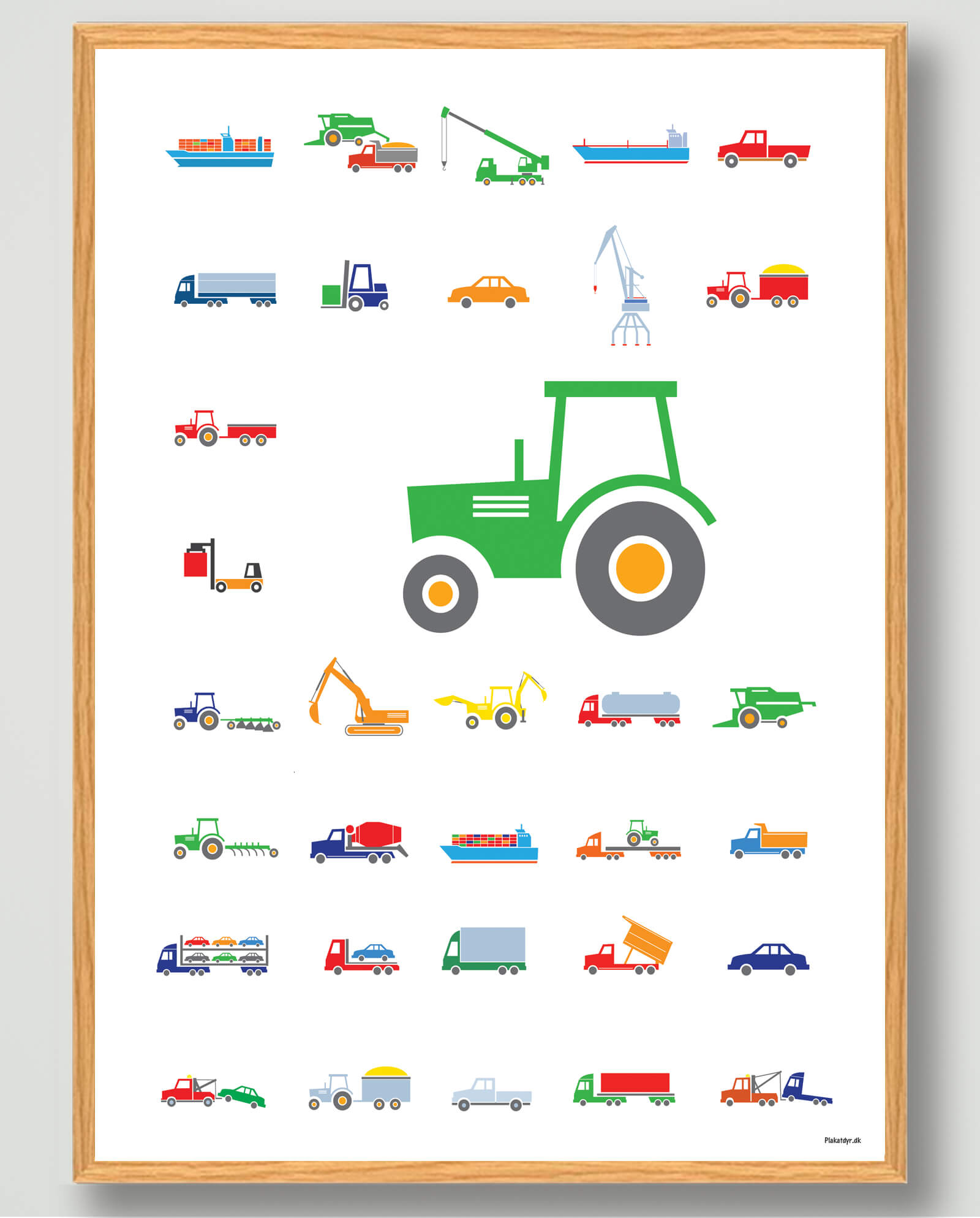 Vi har fundet Køretøjer – Plakat fra Plakatdyr.dk hos Plakatdyr.dk i kategorien Plakater Med Traktorer Biler Køretøjer. Køretøjer Denne plakat til børneværelset har det hele at byde på, hvis dit barn er bidt af maskiner, traktorer, kraner, mejetærskere og meget mere. Ved første øjekast springer den grønne traktor i øjnene. Det farverige, positive design og det tydelige mo