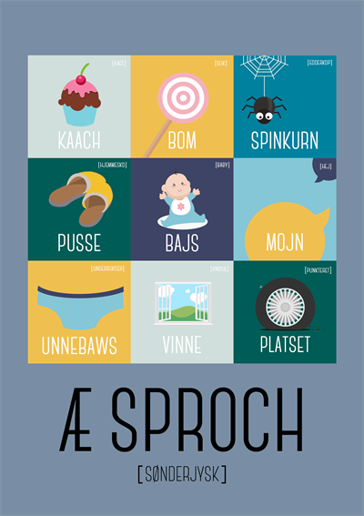 Vi har fundet æ Sproch Blå A – Kaach fra Mutmut hos mutmut.dk i kategorien Plakater Plakater A5. Få styr på de fantastiske sønderjyske gloser med dette kort i farverigt grafisk design.